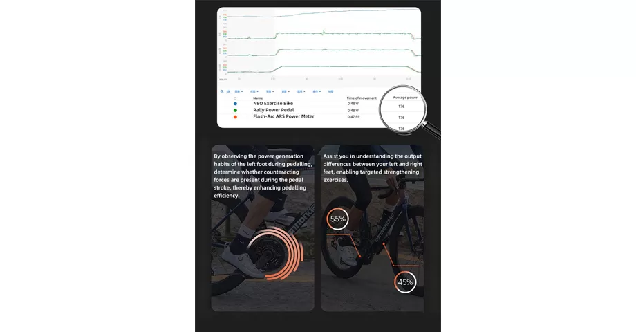 By observing the power generation habits of the left foot during pedalling,determine whether counteracting forces are present during the pedal stroke, thereby enhancing pedalling efficiency.